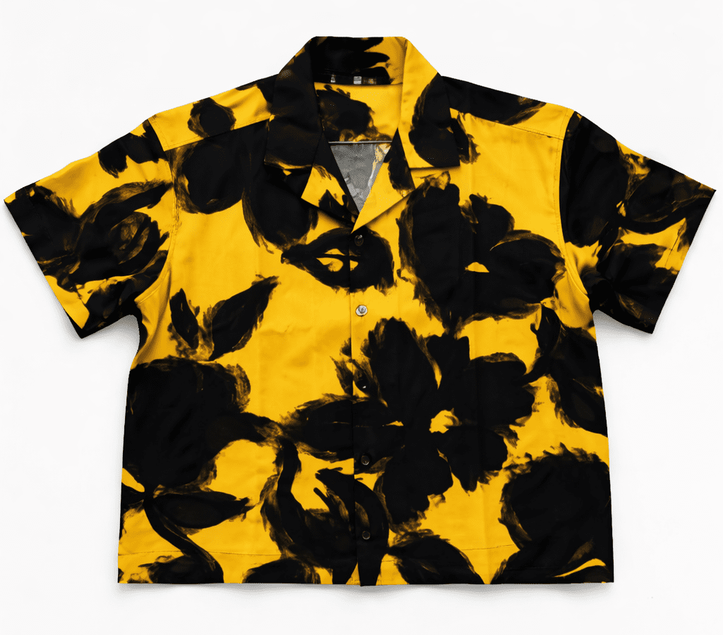 The Boxed Crop Vintage: short-sleeve statement piece built on contrast, structured crop silhouette, relaxed open collar, and an all-over abstract print that draws from the language of expressionist painting. Cut with a slightly cropped, boxy fit that sits clean whether worn open as a layering piece or buttoned through as the focal point of your look. The fluid drape of the fabric keeps it effortless.