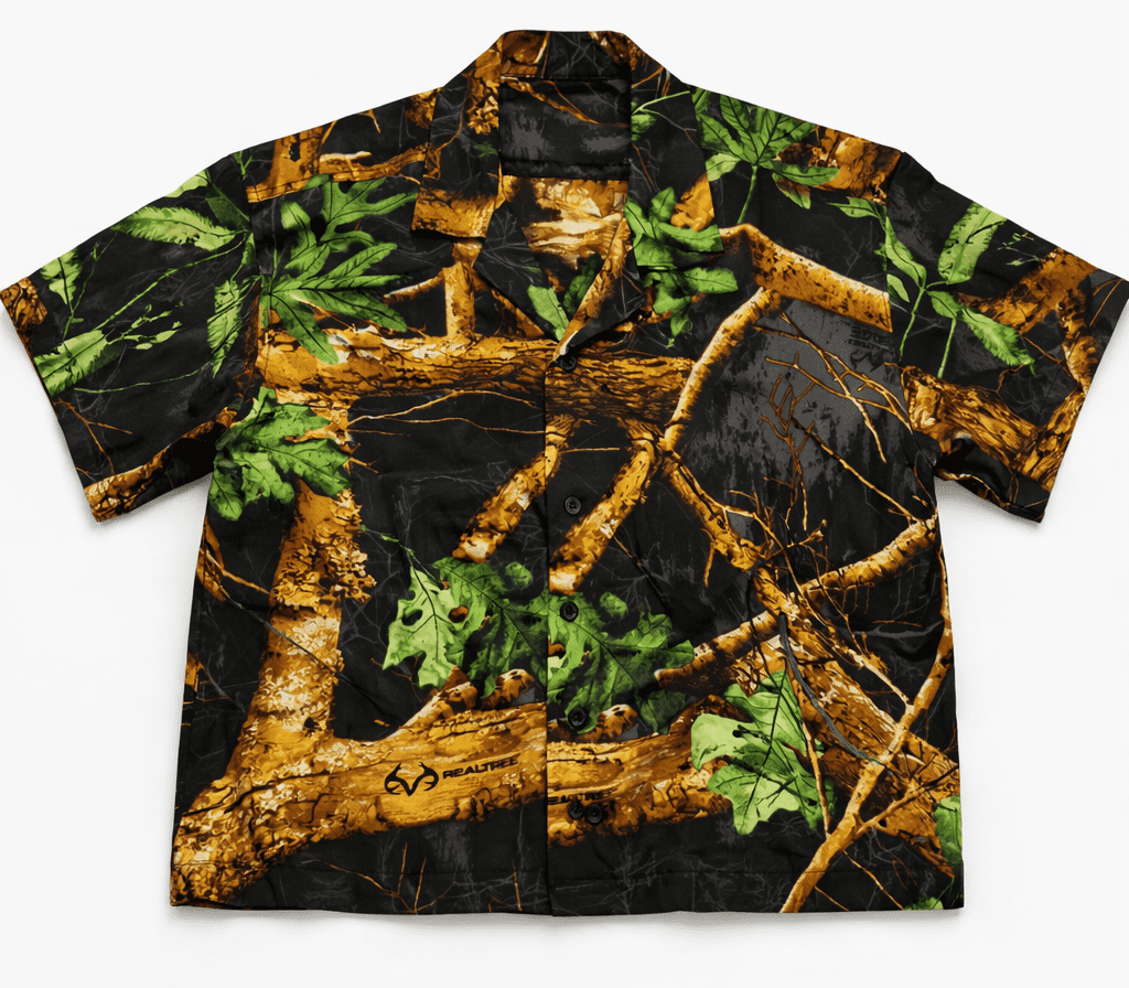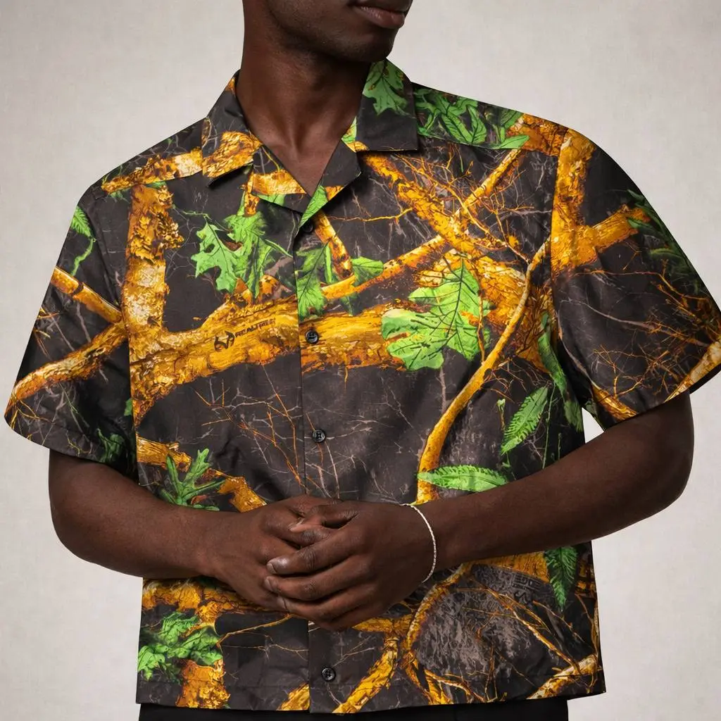 The Boxed Crop Vintage: short-sleeve statement piece built on contrast, structured crop silhouette, relaxed open collar, and an all-over abstract print that draws from the language of expressionist painting. Cut with a slightly cropped, boxy fit that sits clean whether worn open as a layering piece or buttoned through as the focal point of your look. The fluid drape of the fabric keeps it effortless.